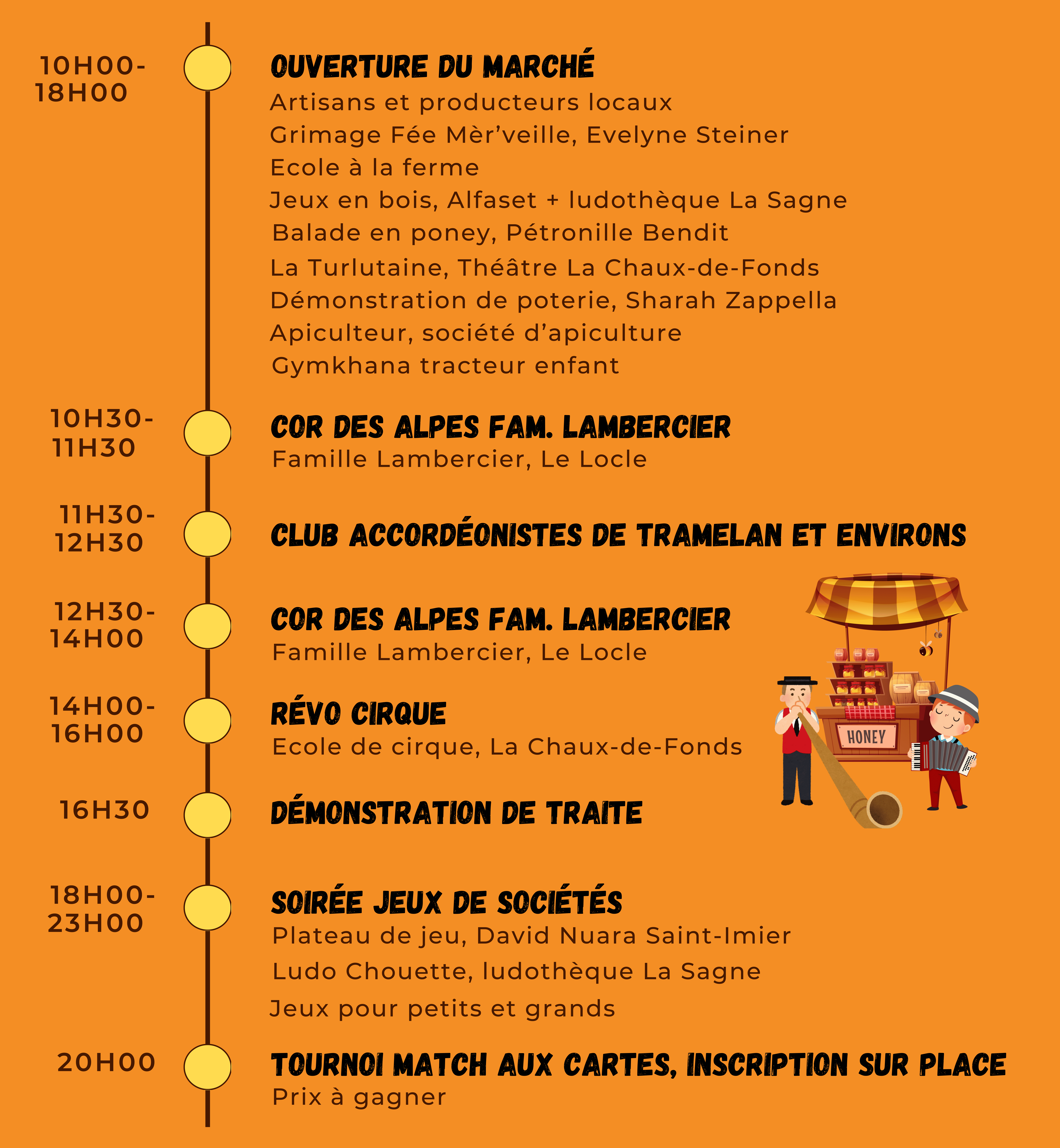 Tout au long de la journée, vous y trouverez un espace restauration avec nos produits régionaux et des animations variées qui feront divertir petits et grands.